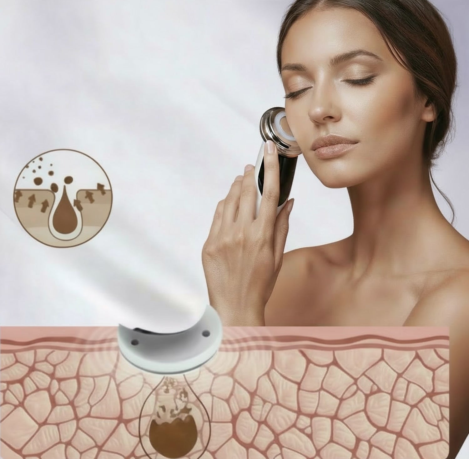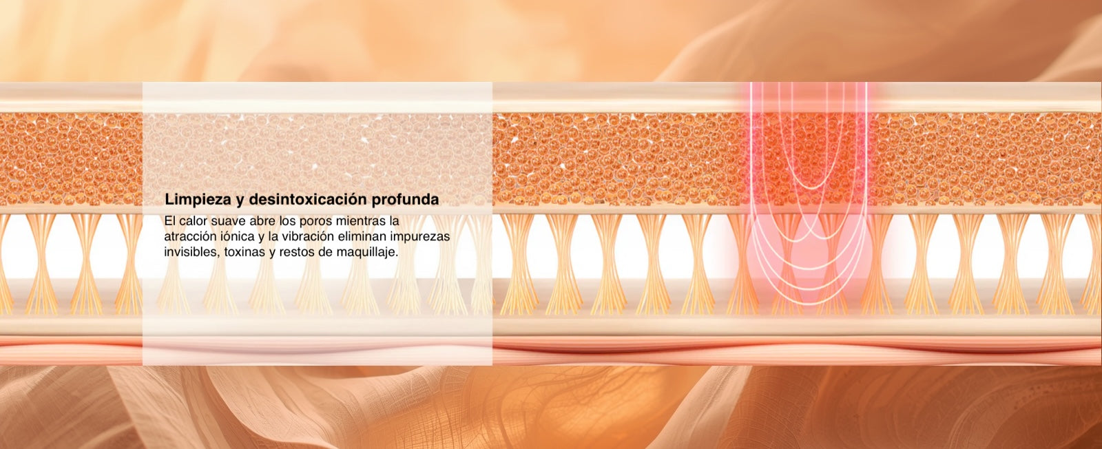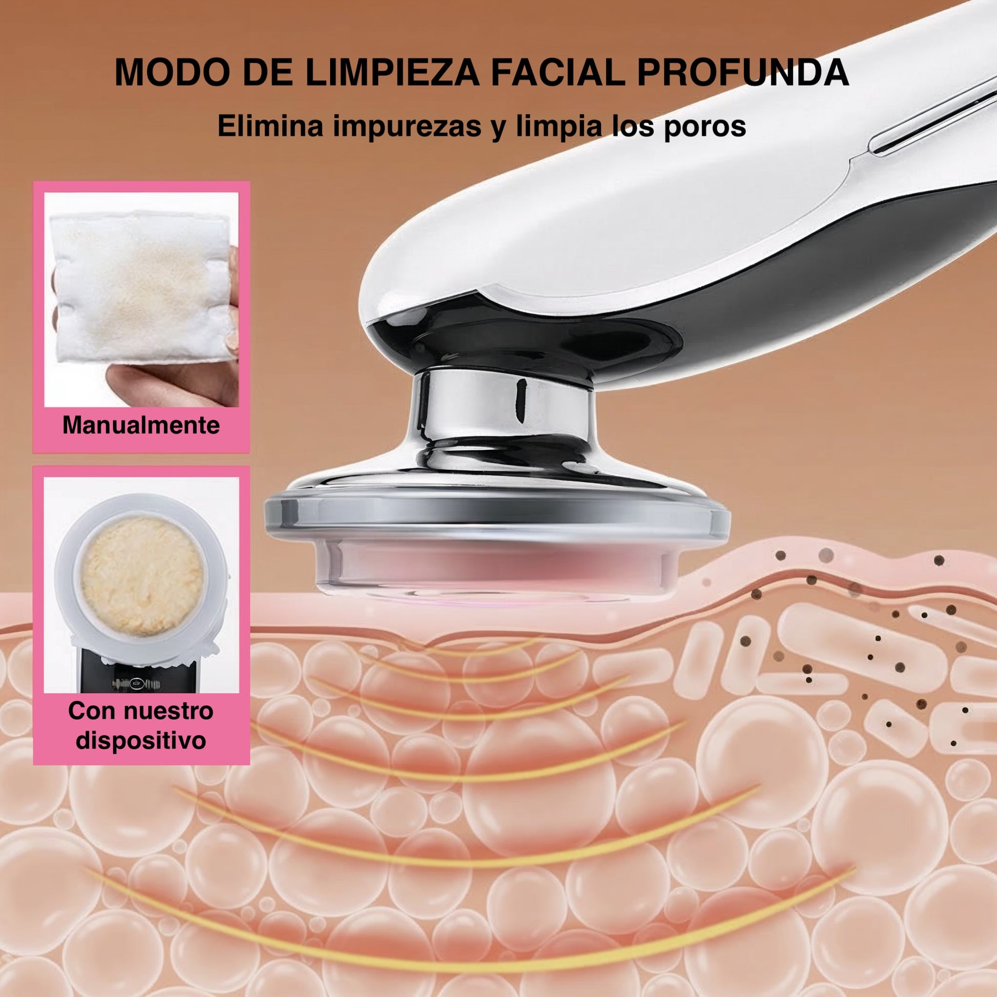 El calor suave abre los poros mientras la atracción iónica y la vibración eliminan impurezas invisibles, toxinas y restos de maquillaje.