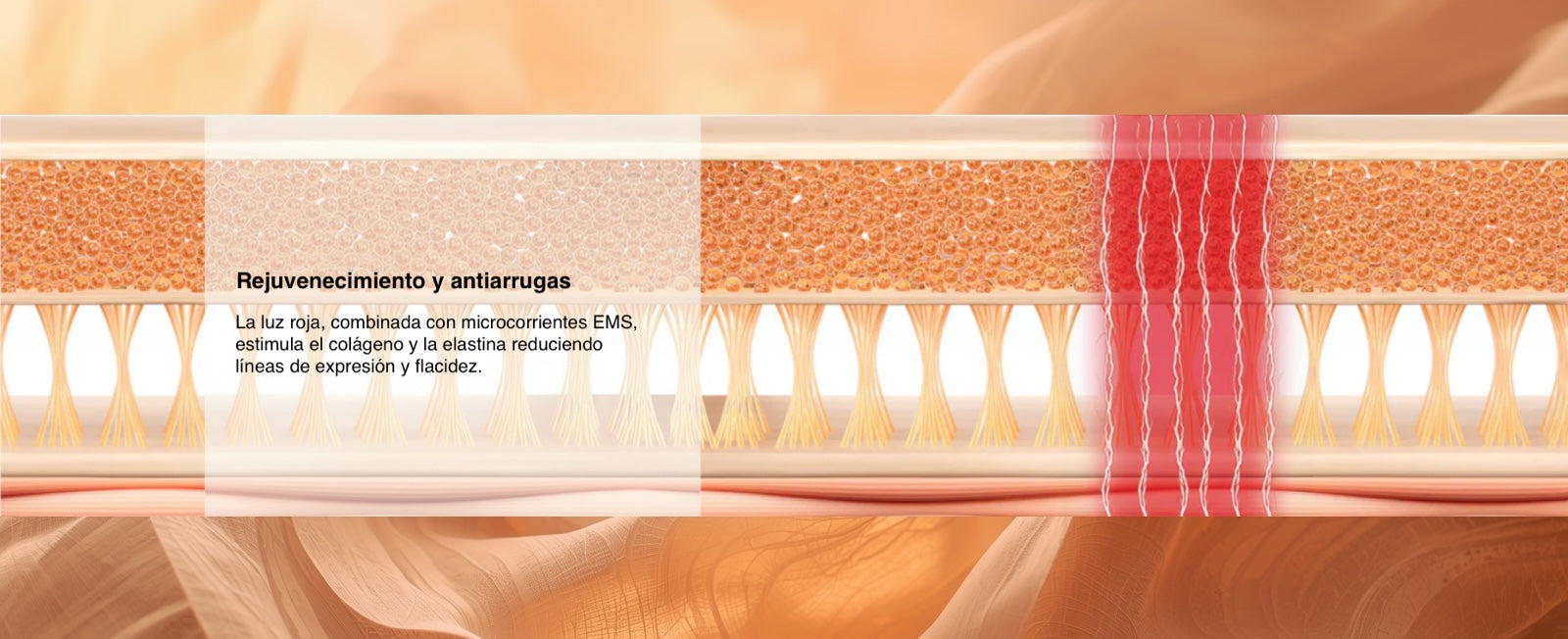 🔴 La luz roja, combinada con microcorrientes EMS, estimula el colágeno y la elastina reduciendo líneas de expresión y flacidez.